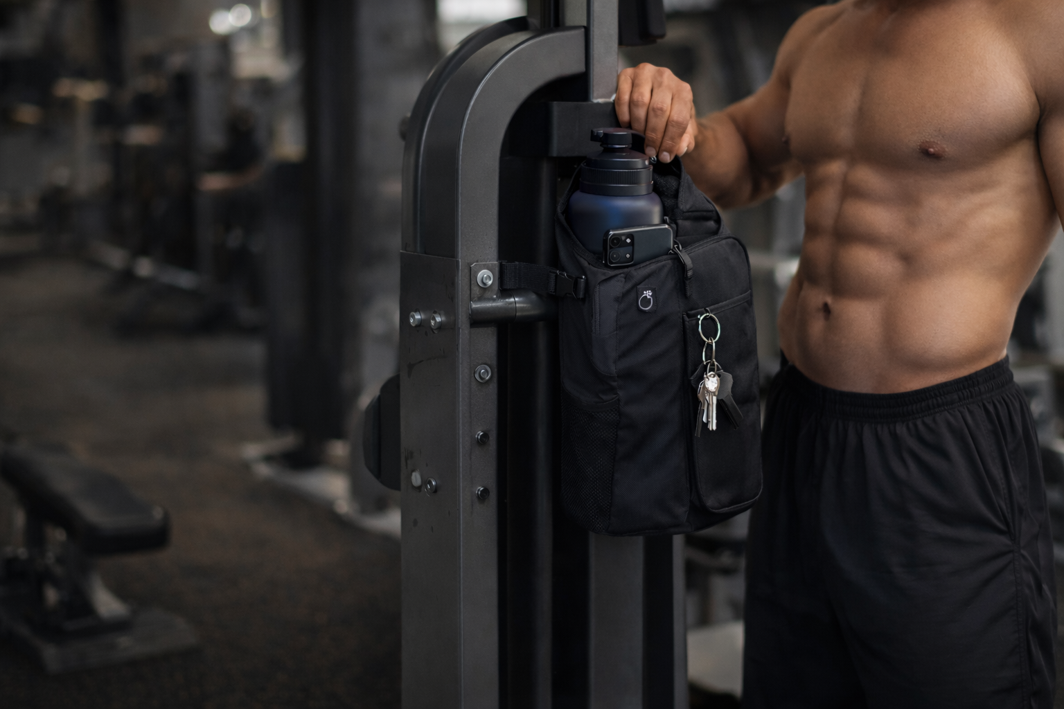 The magnetic gym carrier that keeps your water, phone & essentials secure on any machine — instantly!